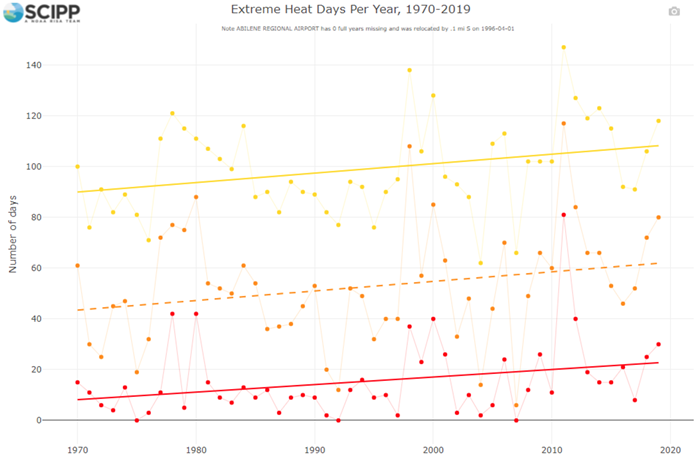 In May 2021, the Southern Climate Impacts Planning Program (SCIPP), a NOAA Regional Integrated Sciences and Assessments (RISA) team, in collaboration with Texas Sea Grant, released a new dashboard that shows historical trends in temperatures for locations across the state of Texas. The new dashboard offers location-specific information about changes in temperature in the last 50 years.